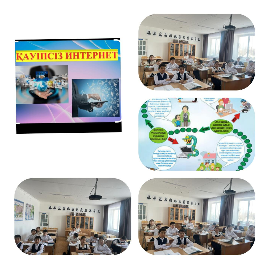 Мақсаты – оқушыларға интернетті қауіпсіз пайдалану жолдарын түсіндіру, жеке мәліметтерді қорғау және кибербуллингтің алдын алу.